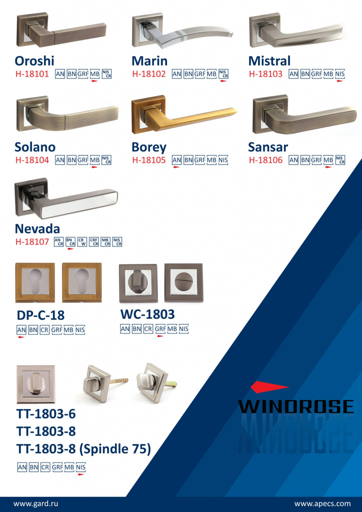 Представляем вашему вниманию новую коллекцию дверных ручек и фурнитуры Apecs Windrose!